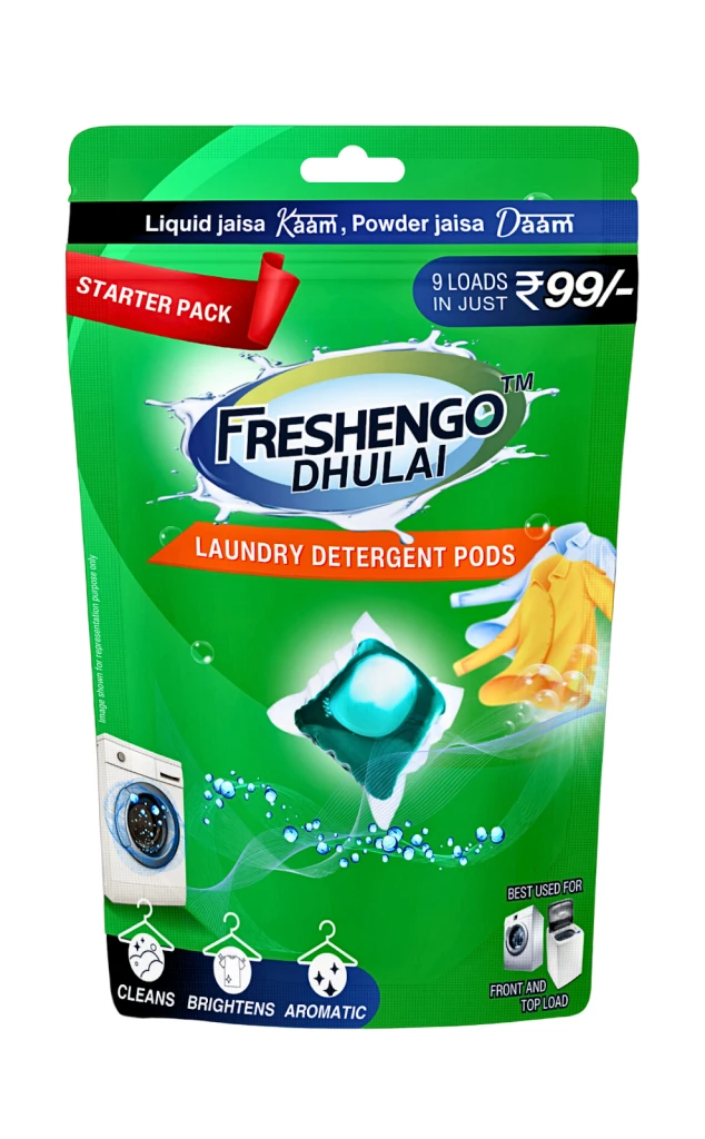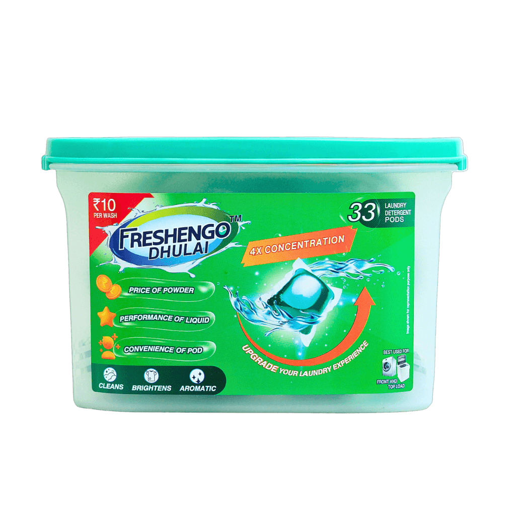 The primary challenge lay in introducing detergent pods, a novel concept for Indian consumers who are more familiar with traditional detergent forms like powder and liquid. The goal was to effectively communicate the benefits of detergent pods and additional benefits FreshenGo’s product holds—