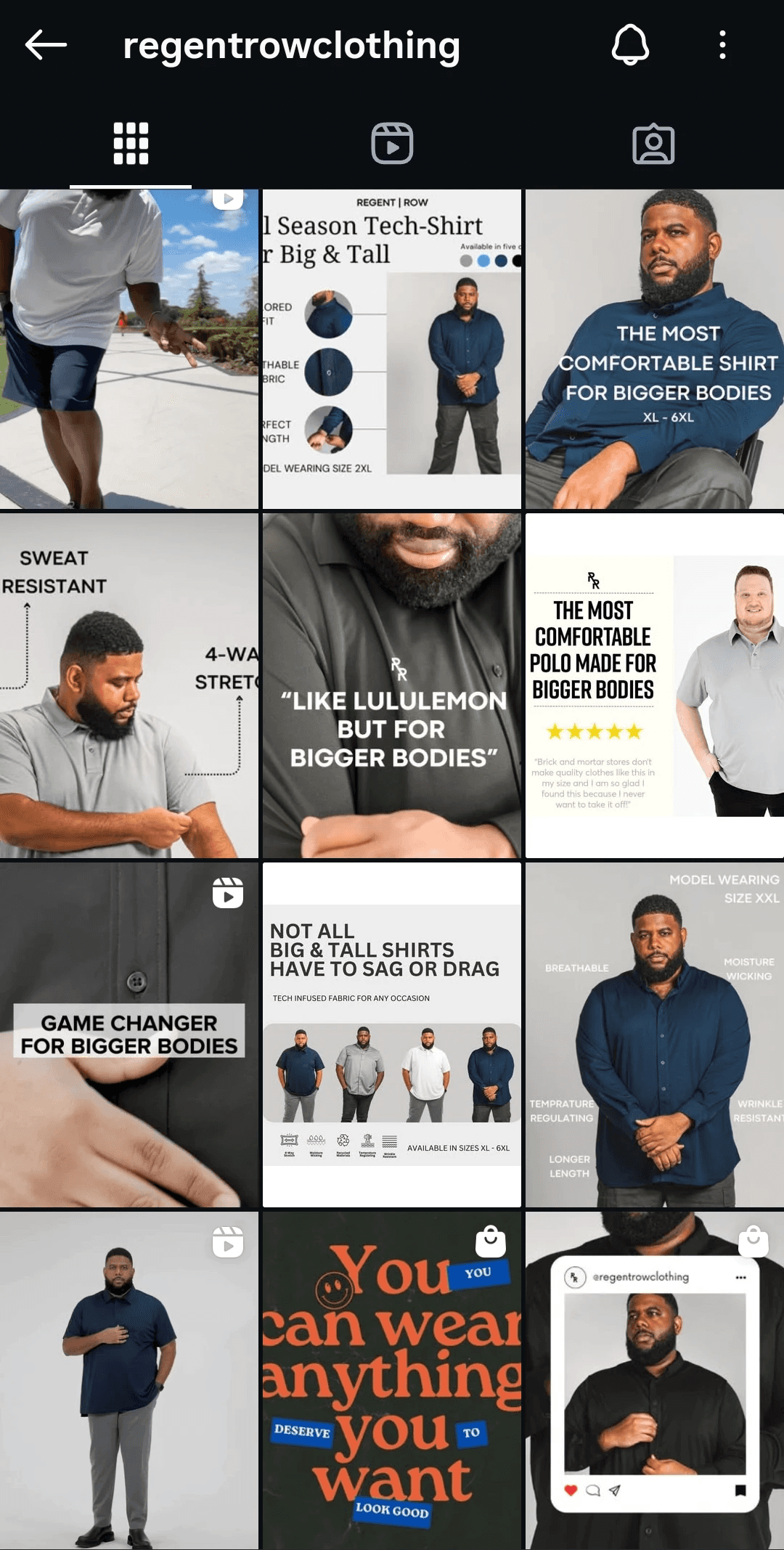 Regent Row’s journey demonstrates how strategy, creativity, and psychology can transform a social feed into a premium landing page that drives both engagement and business results. From product-focused beginnings to aspirational storytelling, the brand has evolved into a recognizable name in the U.S. Big & Tall menswear space.