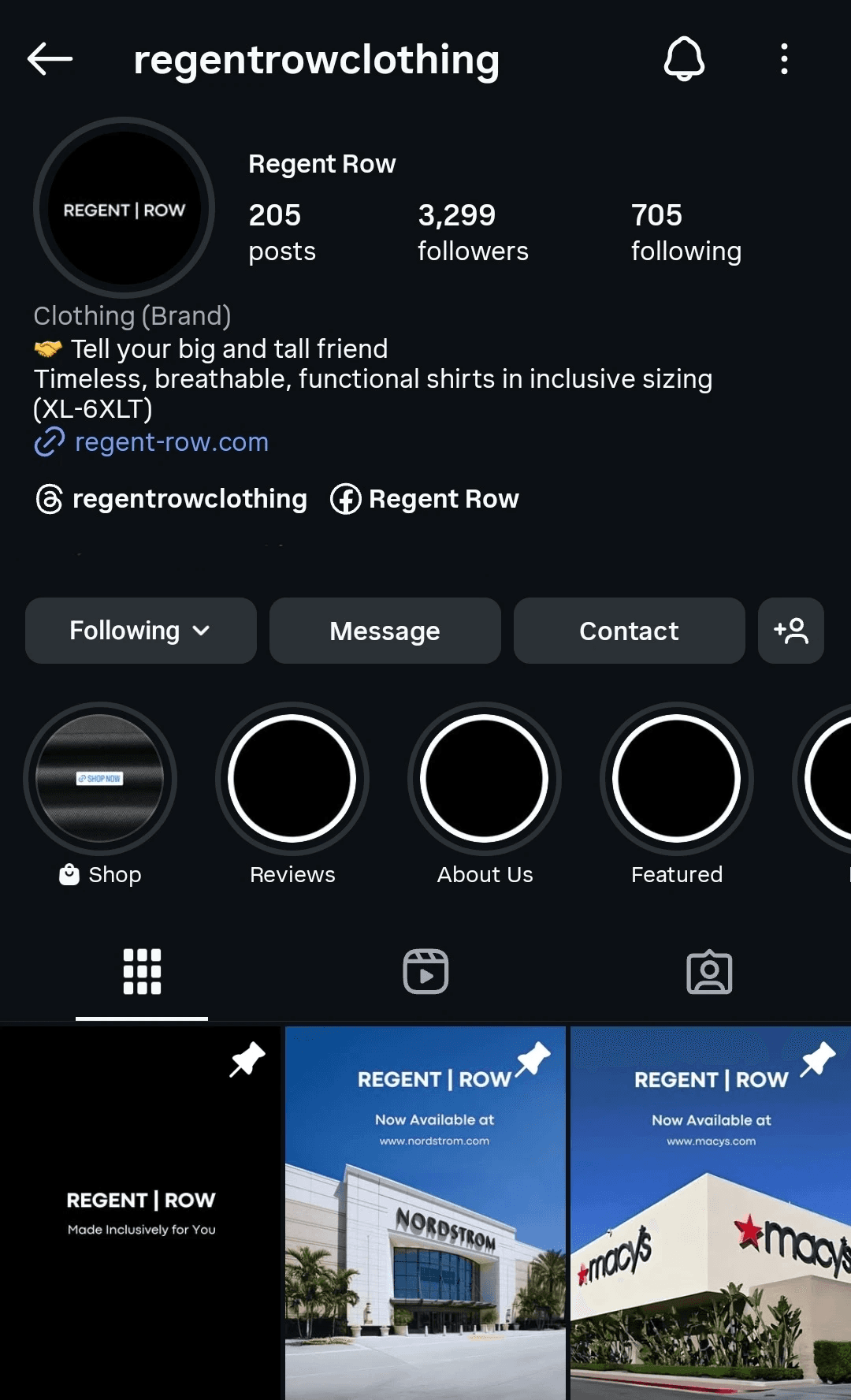 By building trust through authentic endorsements and maximizing every content asset, Regent Row positioned itself as a recognizable name in the U.S. big & tall fashion market. Today, the brand is associated with premium partnerships and has expanded its distribution into Nordstrom and Macy’s, reinforcing its status as a trusted label in a competitive niche.